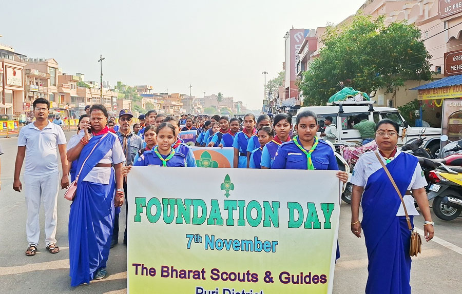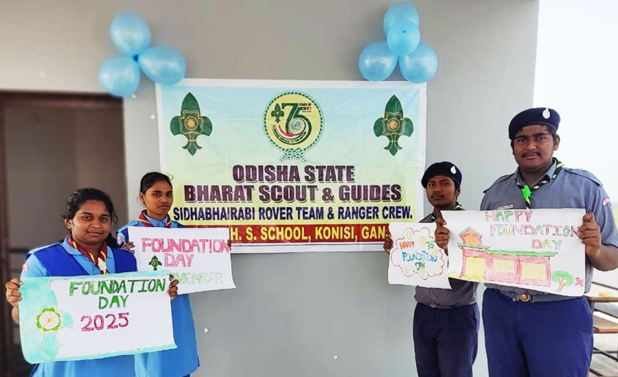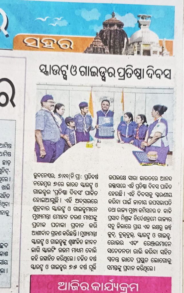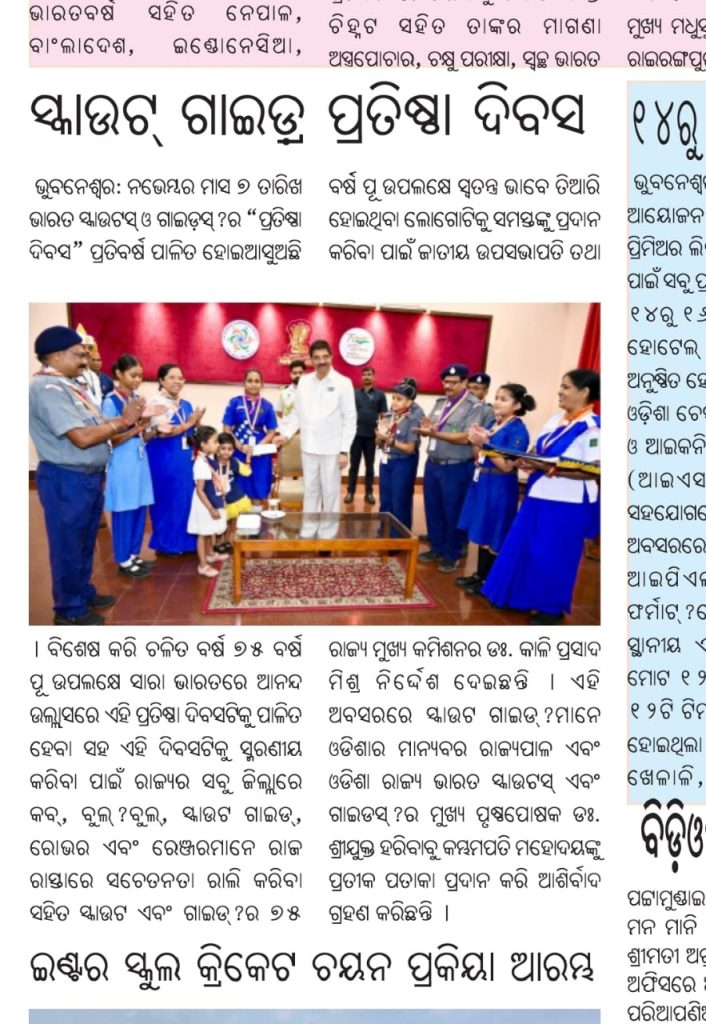The Odisha State Bharat Scouts and Guides celebrated Foundation Day (Diamond Jubilee) of Bharat Scouts and Guides on 07.11.2025. On this occasion Scouts and Guides affixed stickers to Dr. Haribabu Kambhabpati , Hon’ble Governor & Chief Patron , OSBSG at Rajvaban, Sj. Mohan Charan Majhi, Hon’ble Chief Minister Odisha, Dr. Kali Prasad Mishra, State Chief Commissioner, OSBSG and other officials. On behalf of Odisha State Bharat Scouts and Guides different districts also celebrated the Foundation day.