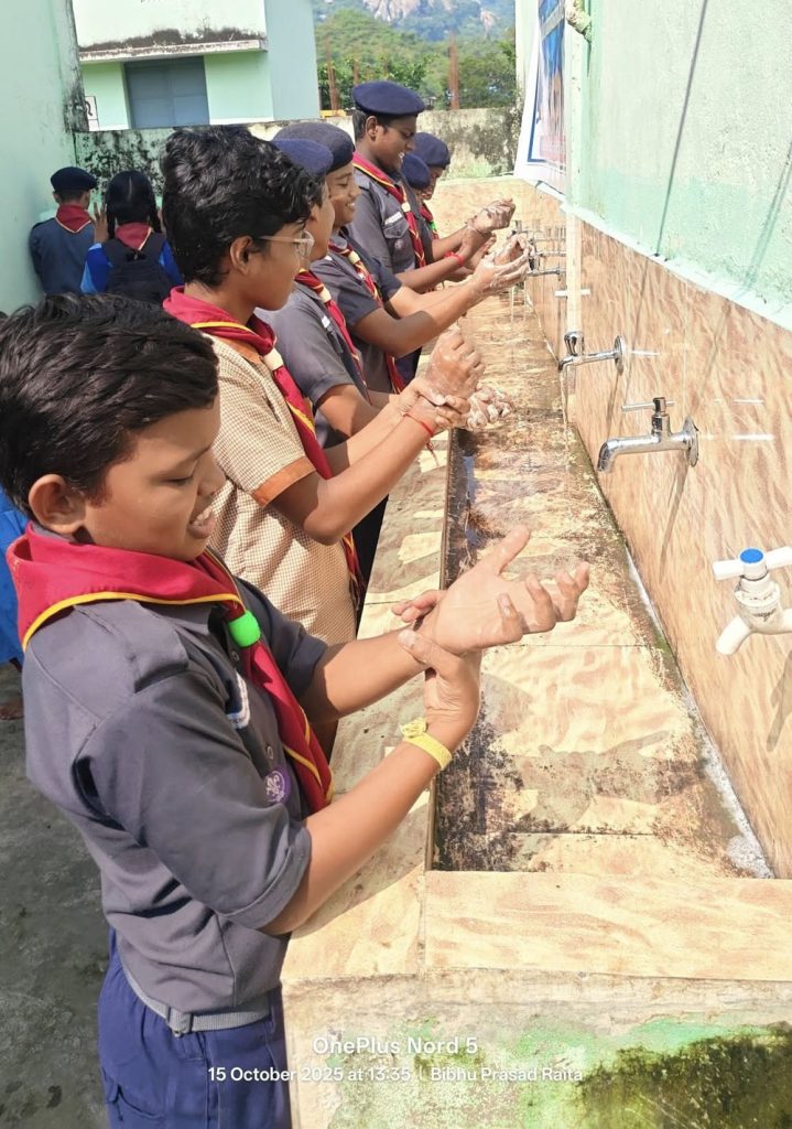 The Odisha State Bharat Scouts and Guides organised Global Hand Washing Day in different district on 15.10.2025. On this occasion Scouts and Guides participated in Awareness activities and demonstrated the importance of washing hands with soap, hand wash to stay healthy and prevent from diseases. They also created awareness and shared their thoughts how hand washing is important in everyday life.