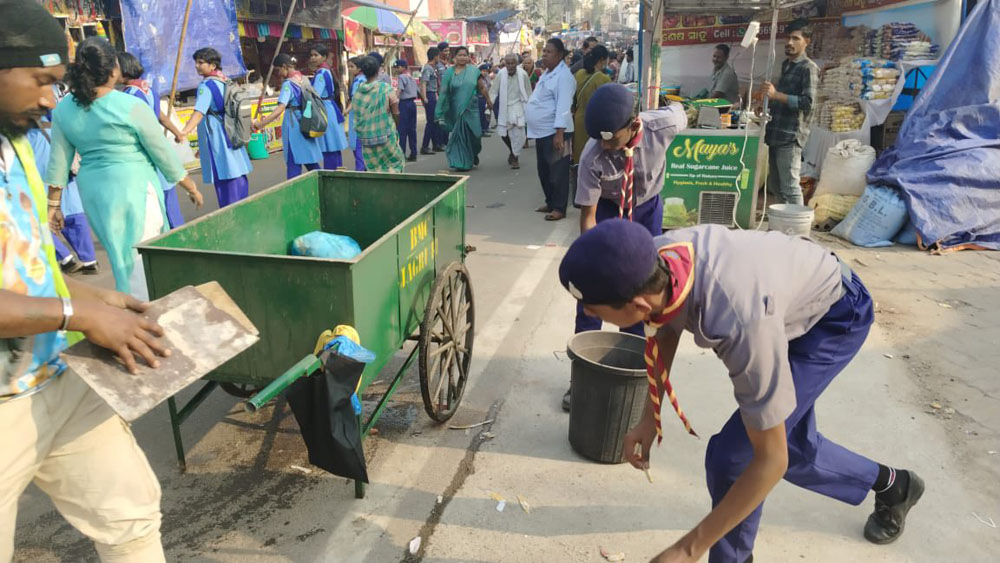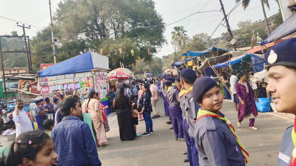 Scouts and Gudies cleaned Khandagiri area, distributed drinking water, maintained disciplined to the devotees.