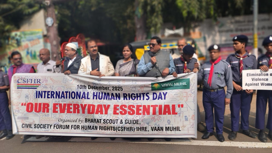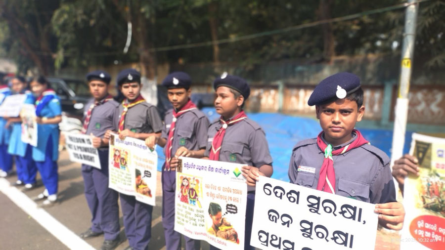 The Odisha State Bharat Scouts and Guides is observing the Human Rights Day at State Headquarter Premises , Unit-III, Bhubaneswar on 10.12.2025. Scouts and Guides from different schools of Bhubaneswar District have joined this progamme and displayed leaflets on road and also joined the awareness rally in front of Exhibition Ground.