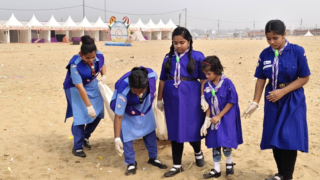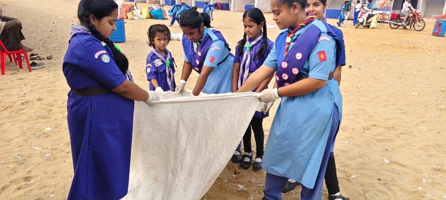 Scouts and Guides of Ganjam district are cleaning Gopalpur Sea beach.