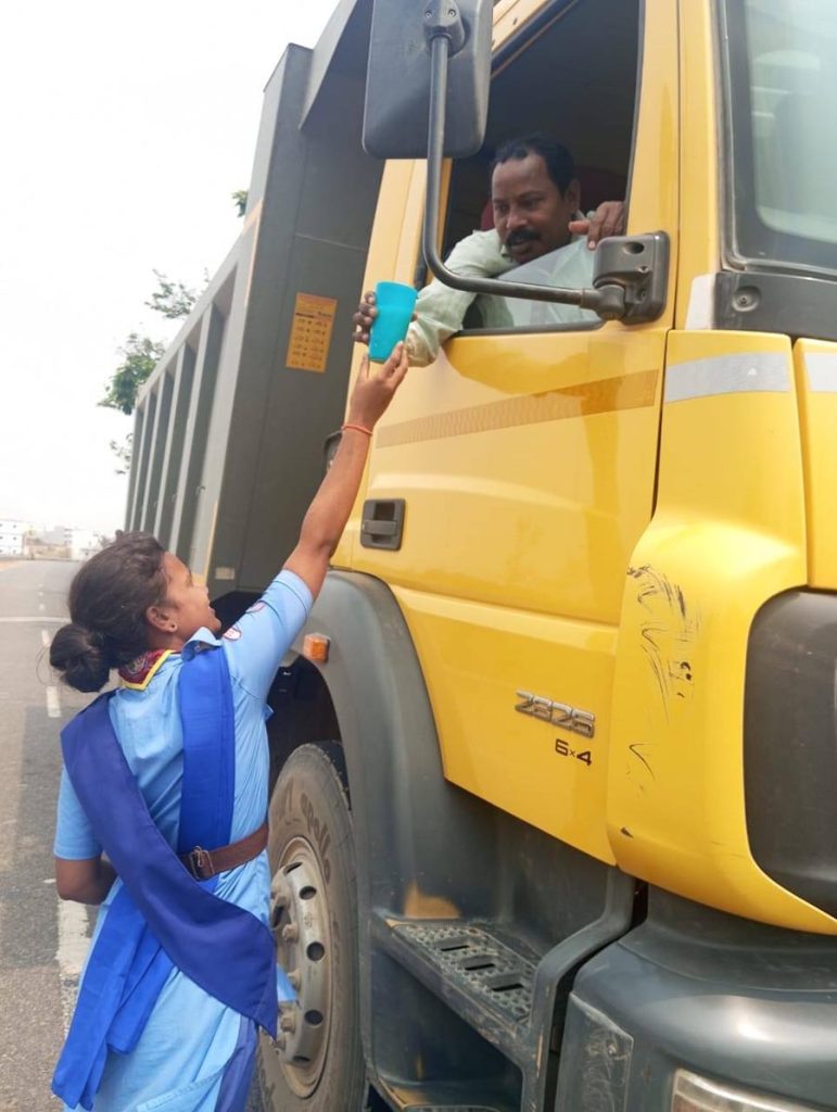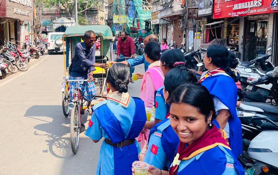 Due to extreme heat, the Odisha State Bharat Scouts and Guides opened Jala Seva Kendras in different districts. Scouts and Guides distributed lemon water and curd water at roadsides, railway stations, and other places to travelers.